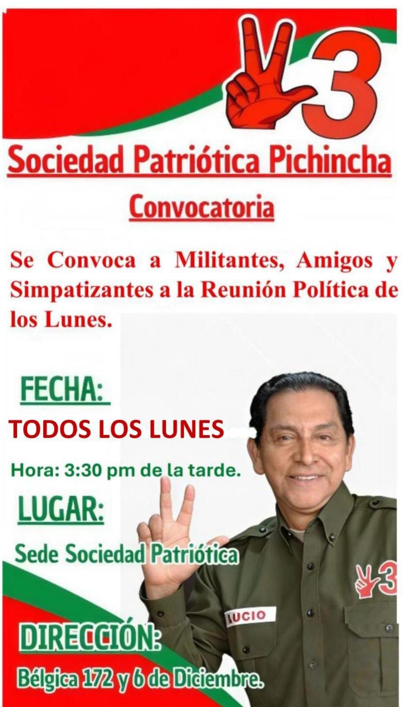 🗓️ Te esperamos todos los lunes en nuestras reuniones políticas, donde analizamos la realidad nacional y construimos propuestas para el Ecuador.